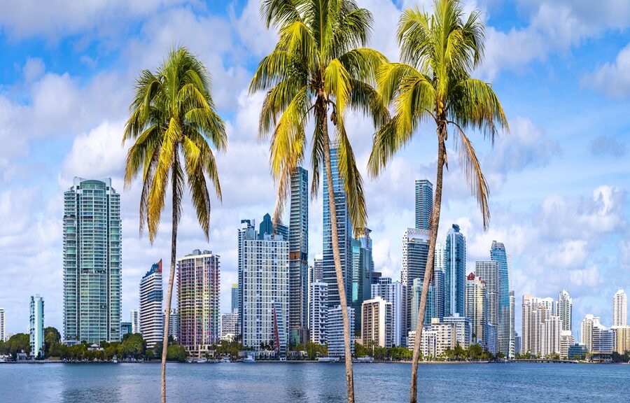 The,Skyline,Of,Miami,With,Palm,Trees,,Florida